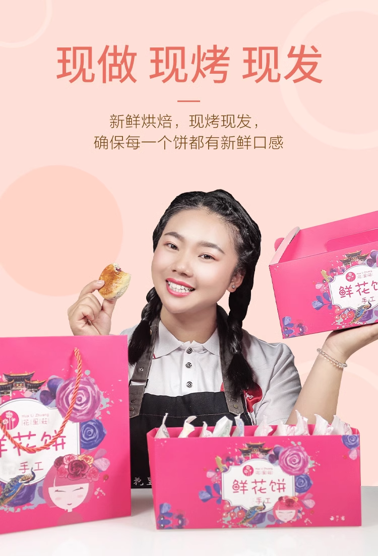 全国包邮丨仅29.9元抢购花里莊【7种口味混合鲜花饼】500克/礼盒装(50克/枚×10枚)送礼袋!真正纯手工,闻香识花饼,精准控制烘焙时长 ,独一无二的饼皮,半生态玫瑰基地,好配方出好饼