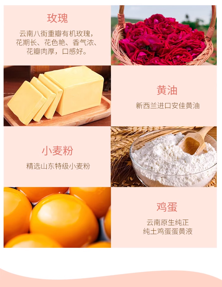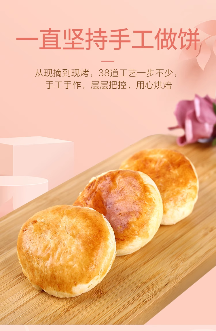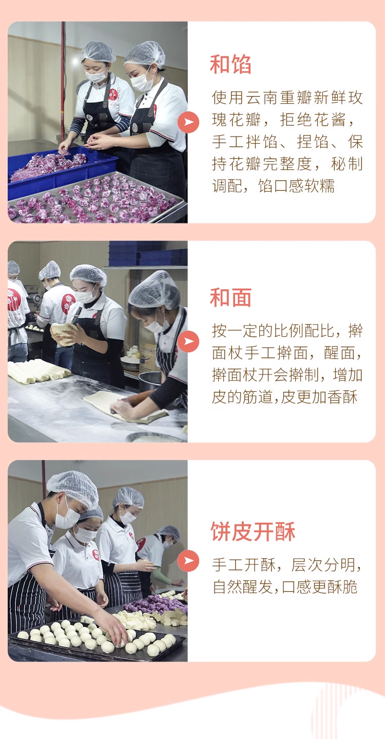 【特点】真正纯手工,闻香识花饼,精准控制烘焙时长 ,独一无二的饼皮,半生态玫瑰基地,好配方出好饼