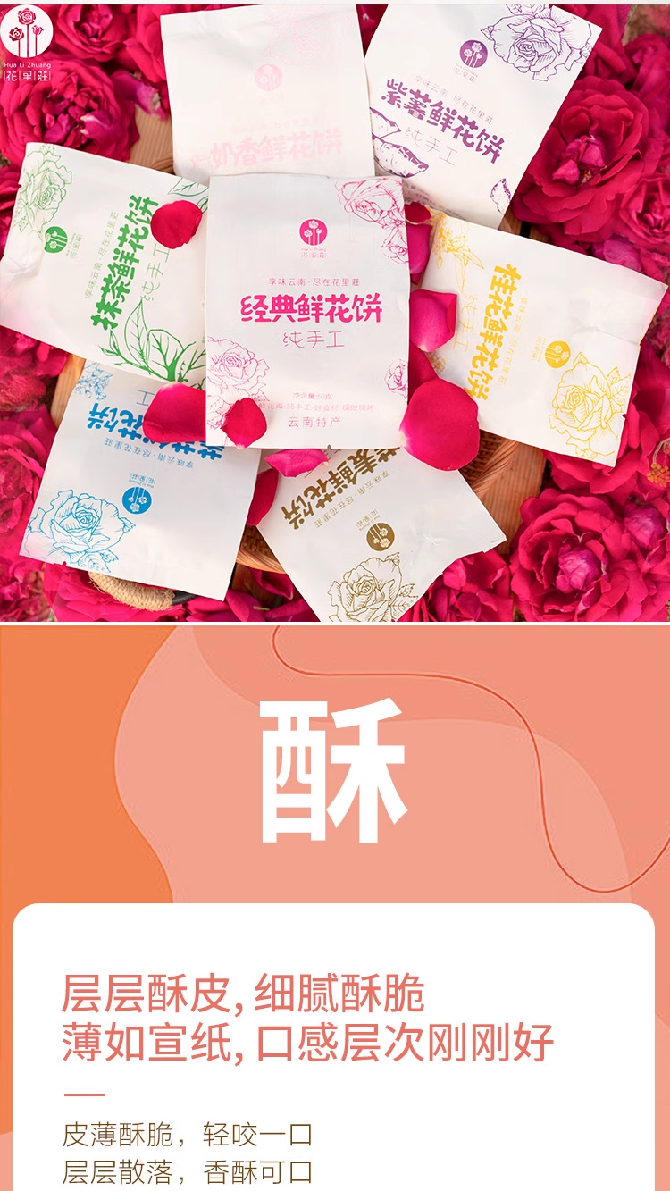 产品信息:花里莊【7种口味混合鲜花饼】500克/礼盒装
